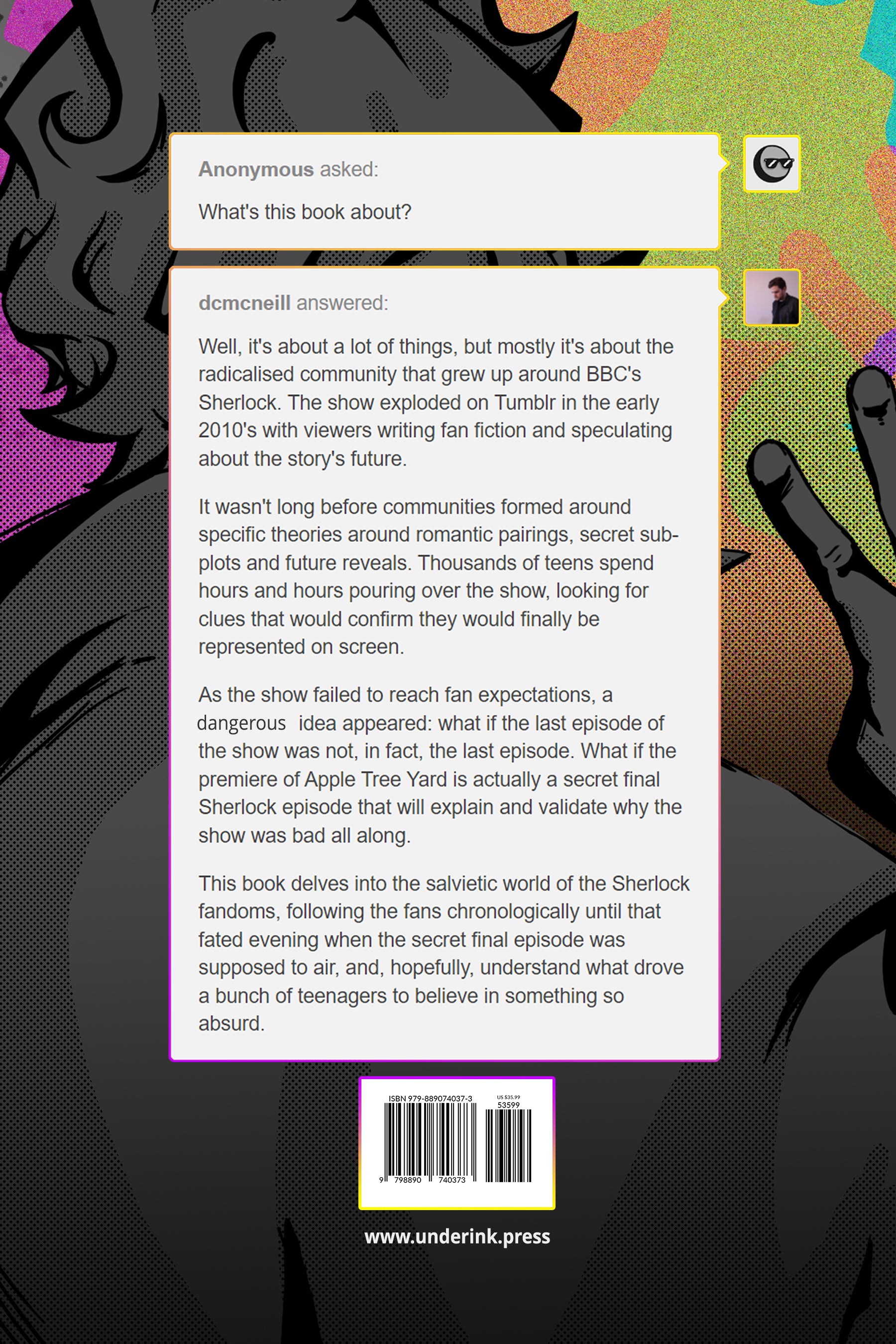 Few academic books are able to effortlessly guide you between the story of a television program's explosive popularity and a decaying community with such levity and enjoyment. McNeill proposes a late-night meeting with Sherlock himself. Author and character fracture into a gripping, truly bizarre prismatic of academic analysis and empathy. From the thousands of Tumblr posts combed through to the journeys of key bloggers, Give Up After Three is nothing short of an opus about growing up with fan fiction.